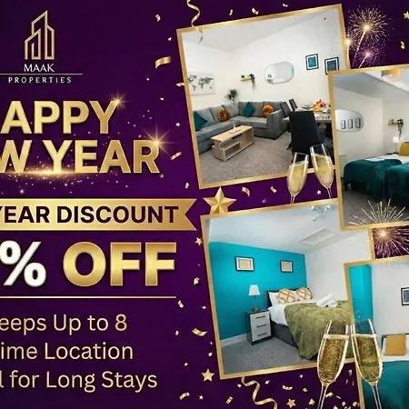 Modern Spacious 4-Bedroom Apartment Near Town Centre - Sleeps 8 erbjuder gästerna ett utrustat kök samt matplats. Busshållplatsen garage är belägen några meter bort från boendet.